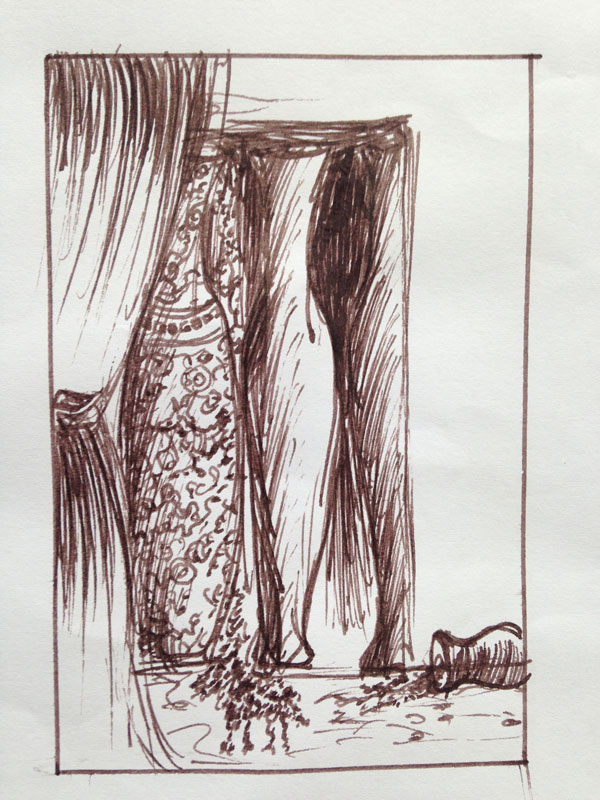 I read one night to baby Caspi every night. It doesn’t matter that he doesn’t understand the words yet; the important thing is that I read to him. Since he is newborn, I gently whisper the Nights to him to help him fall asleep. I believe bedtime stories are a vital ritual and folk tales and fairytales are a rich source of inspiration for me as well as being a repository of world culture and knowledge that cannot be expressed in any other way. More on this later, watch this space! I’d like to pass these down to our little one. While I’m reading, images float into my mind as they always do. Then I draw. These drawings are not illustrations as they don’t necessarily allude to anything in the text. They are riffs on the tales and records of mind wanderings during late night read-cuddle times with my little one.