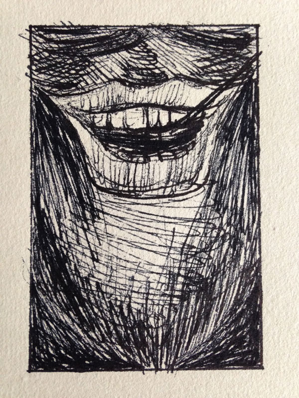 He balances on the ledge perched on the edge of a cliff which drops away to an abyss of a million stars below. There seems to be a paper aeroplane which has just left his hand, a trajectory which leads us to the edge of a carpet.