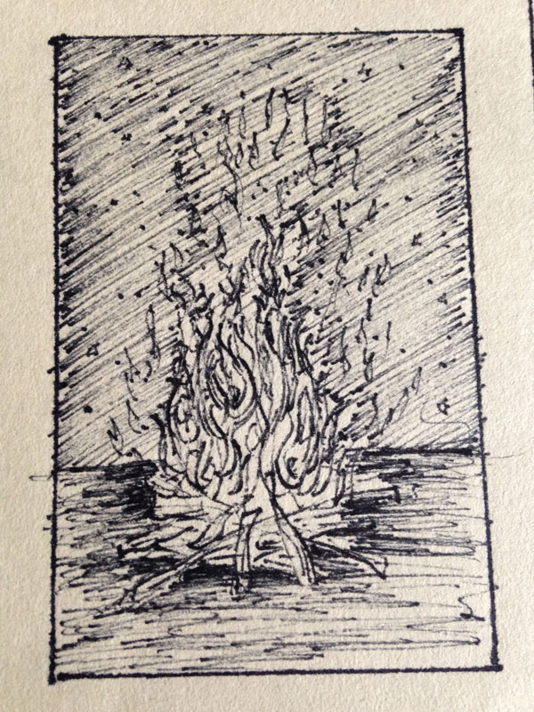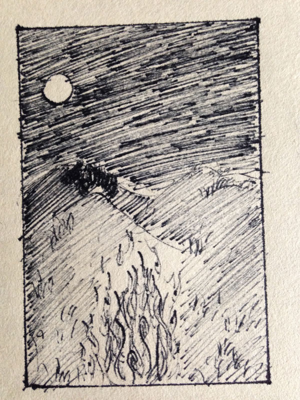 Above the pink sunset sky a cloud dragon lies in wait. It blows 3 lazy circles, thrice, while nudging the edge of the universe. We catch a glimpse of a balancing man.