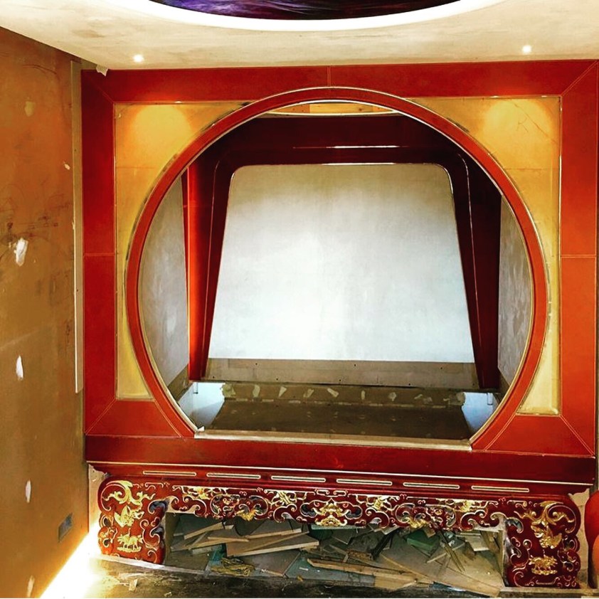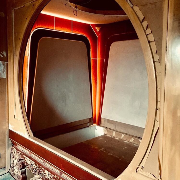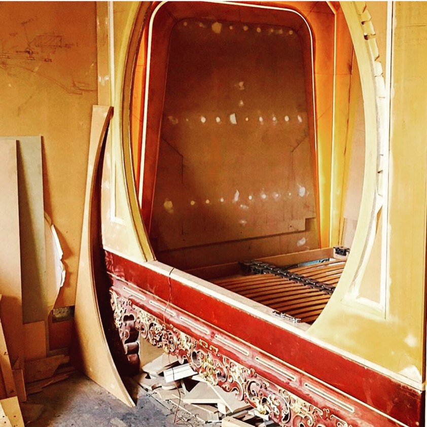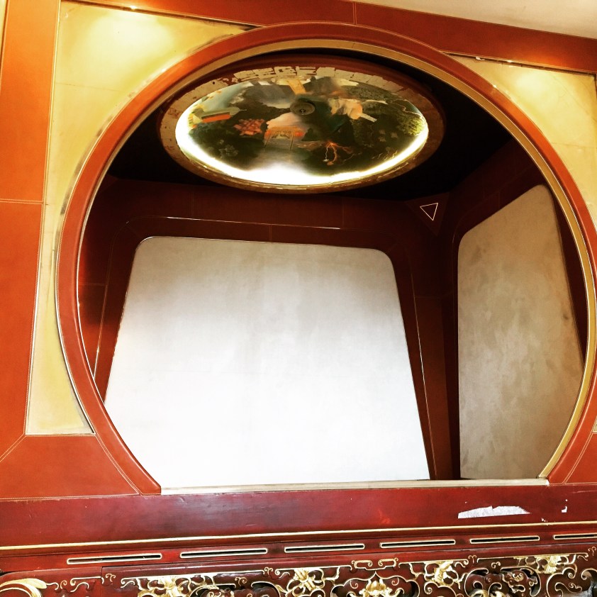 A home for the dome. It’s going in here, in the ceiling of this opium bed. Entirely appropriate for a dome inspired by a poem induced by opium dreams – please note, no opium was consumed during the making of my dome! It’s equally inspired by the revolving rooms of the Sasanian kings – my dome revolves too.