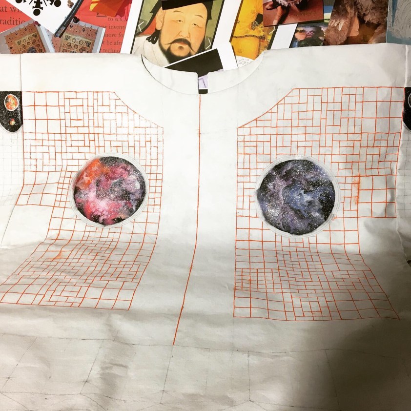 I talk about my art, journey as an artist, creative process, my life-changing moment encountering my favourite historical miniature painting, how the book as an object and an idea is central to my practice, my teaching and courses, ripping out book pages (! Not by me), carpet pages and Carpet Pages, the series of exhibitions I curate, weaving, roots, stories, thinking outside of the boxes and outside of the margins, escaping the frame, the difference between water-based and oil-based paint, different surfaces, vertical and horizontal perspectives and formats in western and eastern art, floating islands and series of islands giving multiple perspectives, not prioritising one over another, in the Deleuzian rhizomatic sense – no privileged viewpoint, magic carpets as islands, growing up in Hong Kong island hopping daily, changing my reference points and my early interest in the outlying and the marginal, the city and the natural landscape, anthropomorphism in landscapes, maps and the importance of islands in history, the spark in my childhood that prompted my 1001 Nights PhD adventure today, my 10,000 hours, being interrupted – like Shahrazad, who was also a mother – while also being in the flow and picking up where you left off and embracing that, historical art workshops and their deadlines, insomnia and creativity, frame narratives and stories within stories, fate and magic, early cinema and 16mm film, talismanic shirts, the Arabic abjad, letters and numbers and big numbers, survival instinct, the curating process and the story behind my brushes. Fittingly we recorded it in the @britishlibrary with all its attendant public sound effects 🙂 Thanks to Esra Alhamal for doing such a good job with her seamless editing skills!