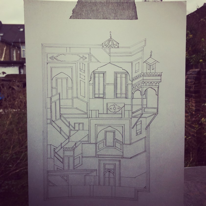 #1001 #1001nights #1001nightsphd #slade #vaishaliprazmari #tracing #persianminiature #mughalminiature #architecture #roomswithinrooms