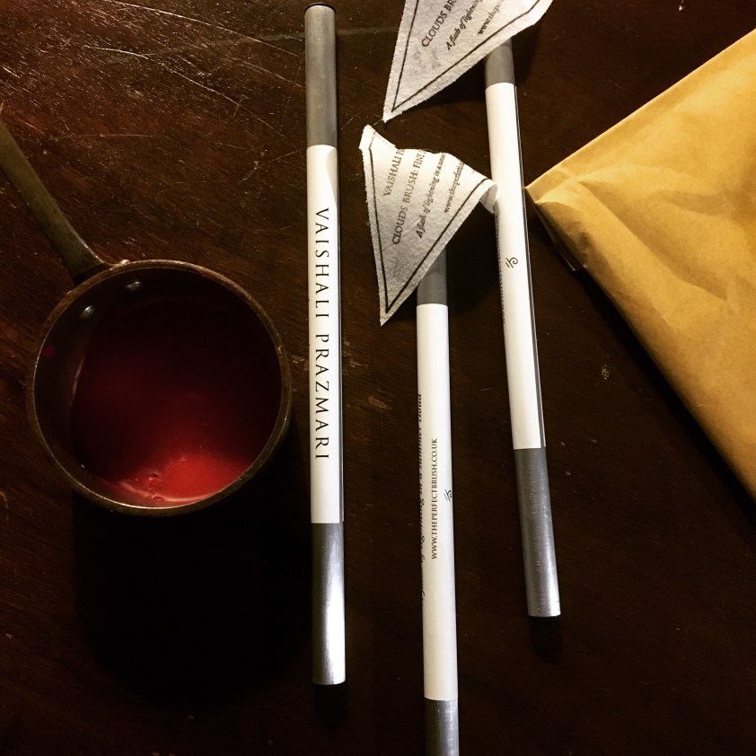 This is how I do it – first sort brushes and especially put the Clouds brushes with their respective flags. When customers receive them I encourage them to write on the raw wood handles exactly what the brush is for, ie customise them yourself and make them yours (eg: miniature outlines/fine detail etc – or whatever works for you). Then stick on packaging stickers. I found that aluminium tubes work best as they are lightest and strongest, as I have a lot of international orders esp to the US and this is the only way they won’t arrive bent (as one did, before I figured out the packaging hah!)