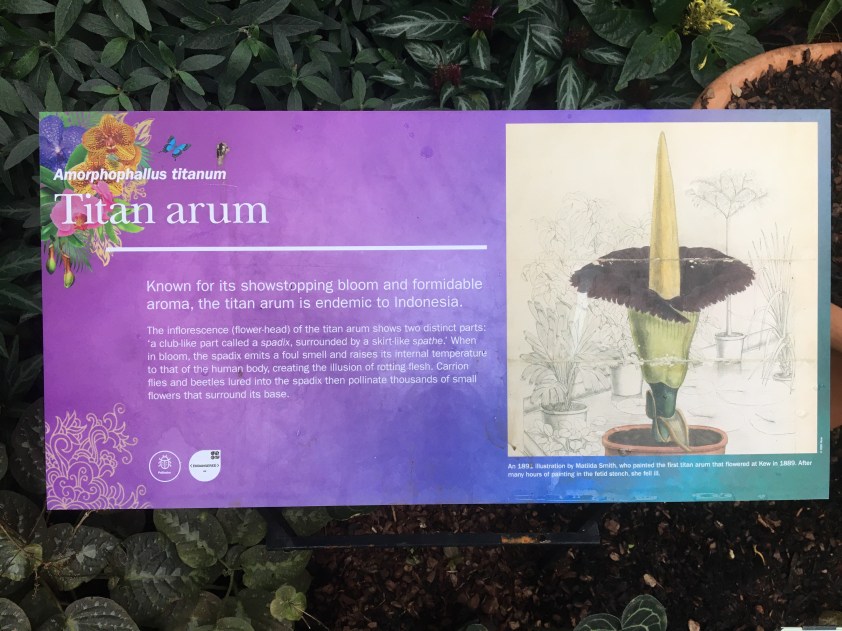 The mighty Titan Arum… the elusive Corpse Flower… that smells like a rotting corpse when in flower and ONLY flowers once every 7-10 years!! And I missed it last year. It’s on my bucket list. Kew has a couple here. I’d love to see these in the wild one day. I’ve been fascinated with strange plants since childhood. Also carnivorous plants in general… as a good friend once asked, what are they thinking, really? Because they are definitely thinking/plotting to take over