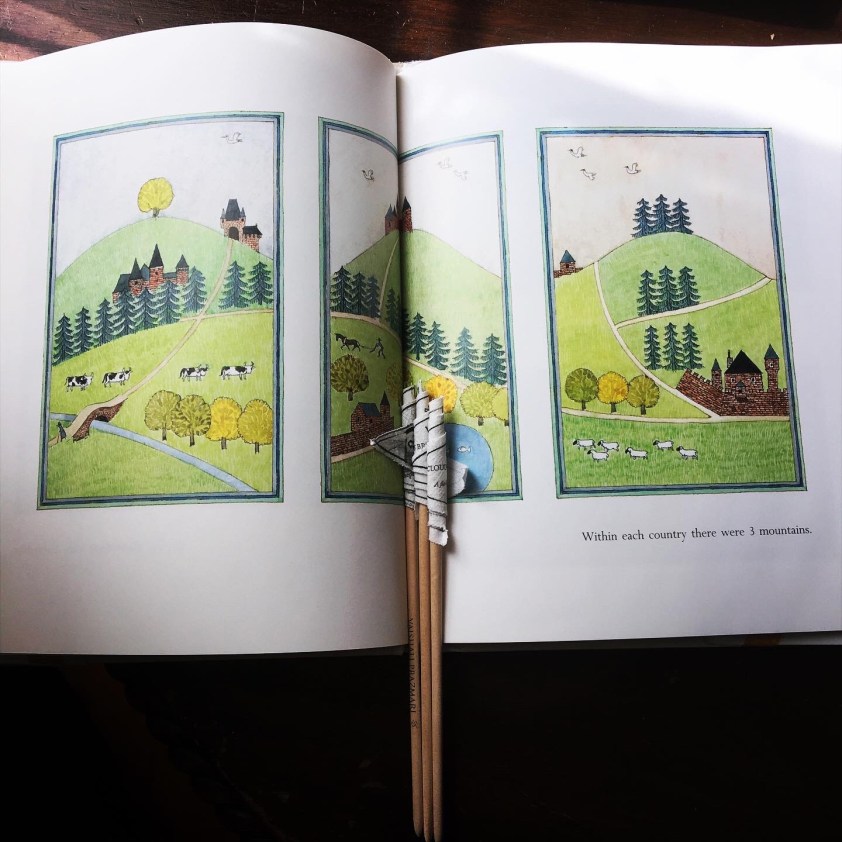 Anno’s Mysterious Multiplying Jar by Masaichiro and Mitsumasa Anno tells the story of worlds within worlds, a story inside the jar of an island with 2 countries, each with 3 mountains. Scroll to read how the worlds and numbers multiply exponentially and factorially. I don’t actually fully understand this mathematical concept even as an adult so this delightful book is filling in gaps in my knowledge, too.