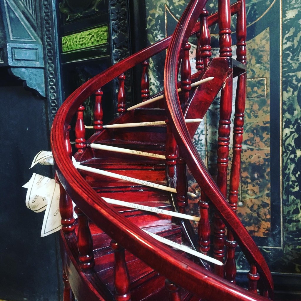 Spirals – spiral stairs, DNA, 🧬 double helix, clouds and coastlines, hair growth, embryonic growth, ferns and fractals, water down a drain and waves 🌊 and rock formations and smoke spirals and even fire escape spiral stairs… spiralling back to the beginning.
