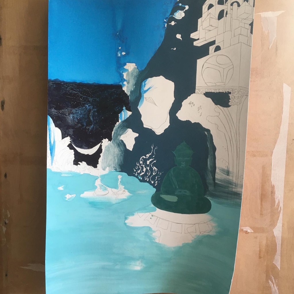 Preparing to revisit a painting I started ages ago (pre-baby)