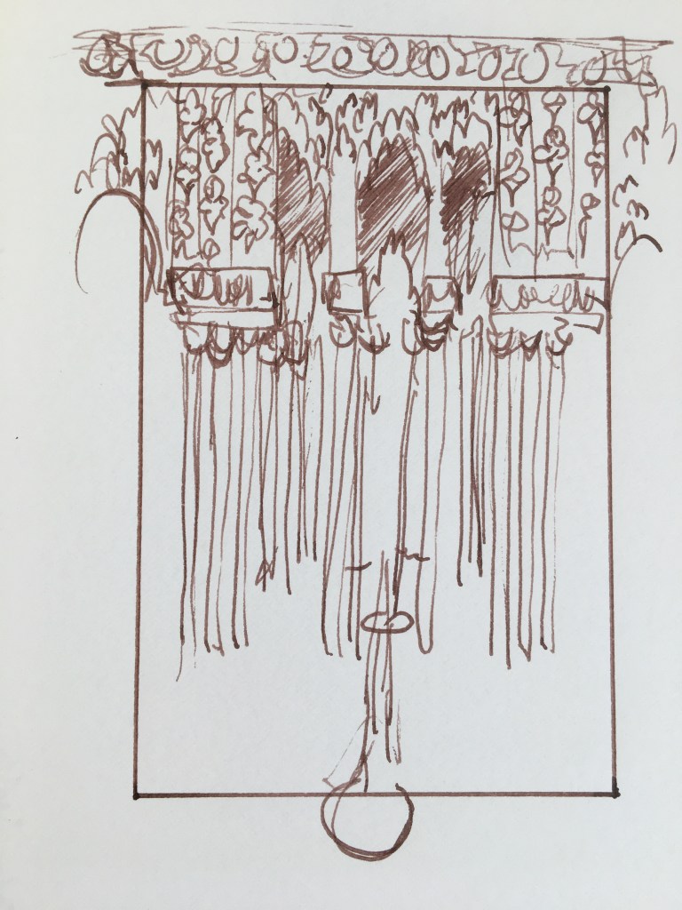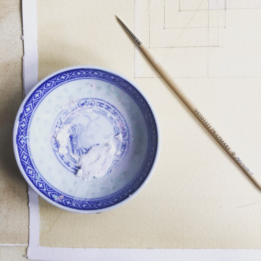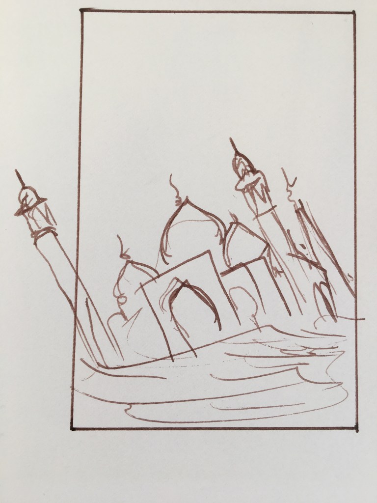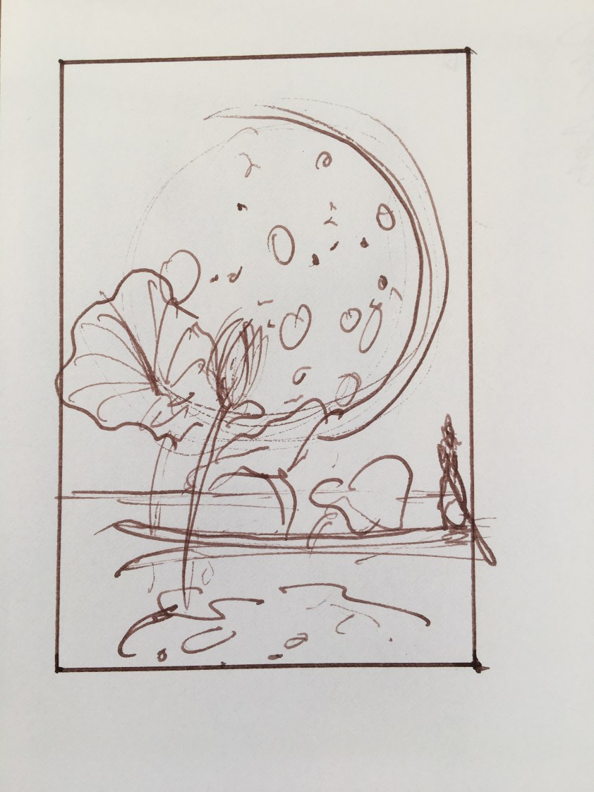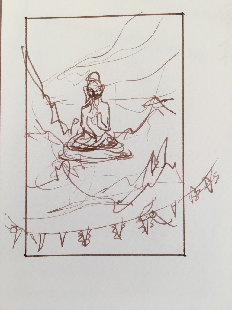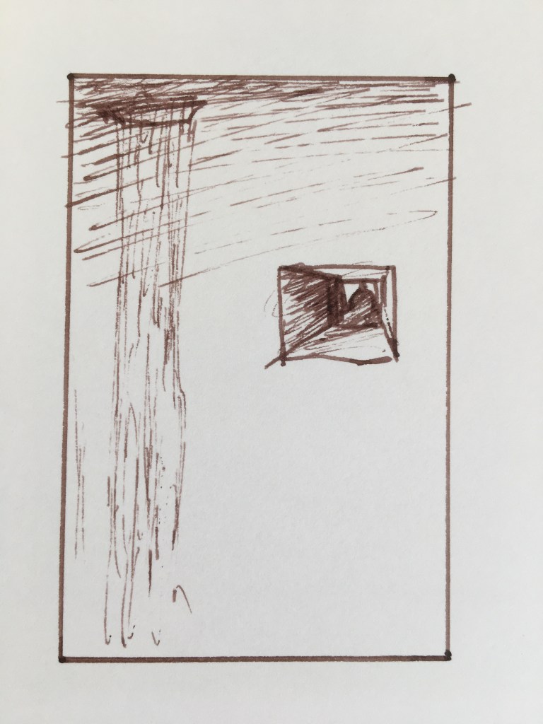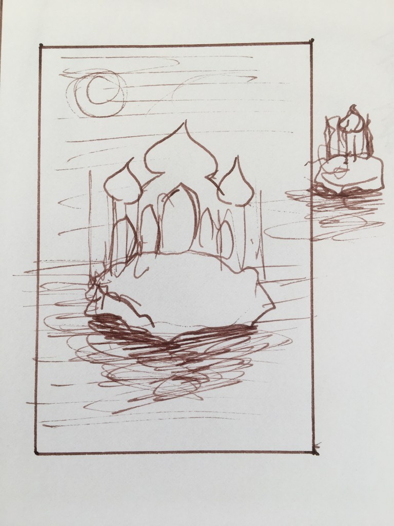 The sketch. Just paint it straight, using paint to do the sketch, don’t bother with pencils… also pencils are a different material and I don’t know how they will hold over the years, whereas I am familiar with paint