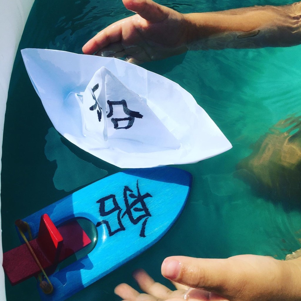 On the back of my makeshift Clouds brush boat I wrote 船 chuan boat because… any opportunity for Chinese characters! Any opportunity to set it in a child’s (and my!) memory.