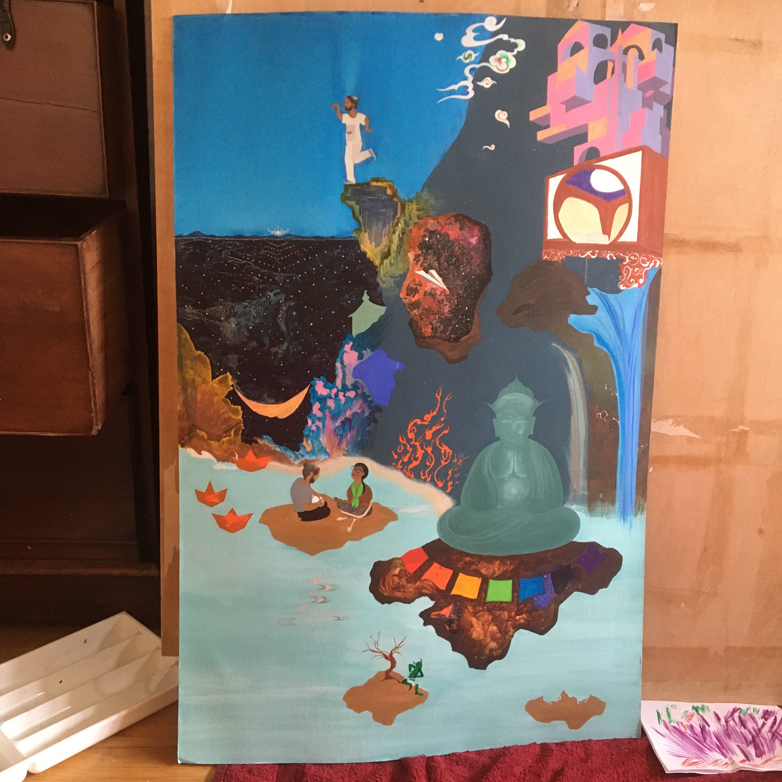 And of course a simple paper boat. These are going in my Door Buddha painting as golden boats (reminiscent of the golden Chinese sycee yuanbao ingots at Spring Festival Chinese New Year symbolising fortune) (any opportunity at all to be culturally aware… and this is just for Chinese learning. I am obsessed… luckily we are doing only one language at a time, mother and son. Otherwise… whole world of cultures to explore and be obsessed by… India, Persia, Russia… and actually the rest of the world 🌍)