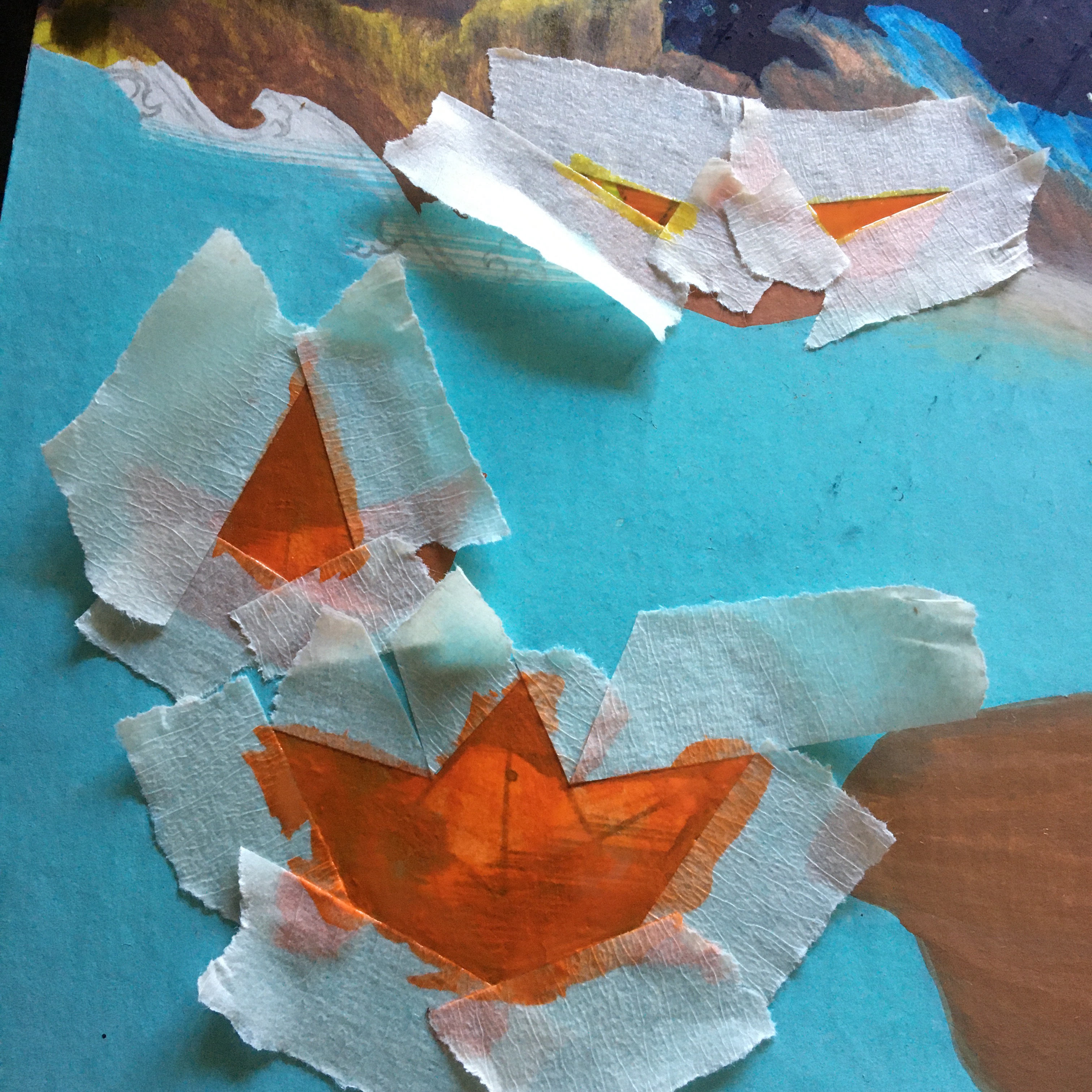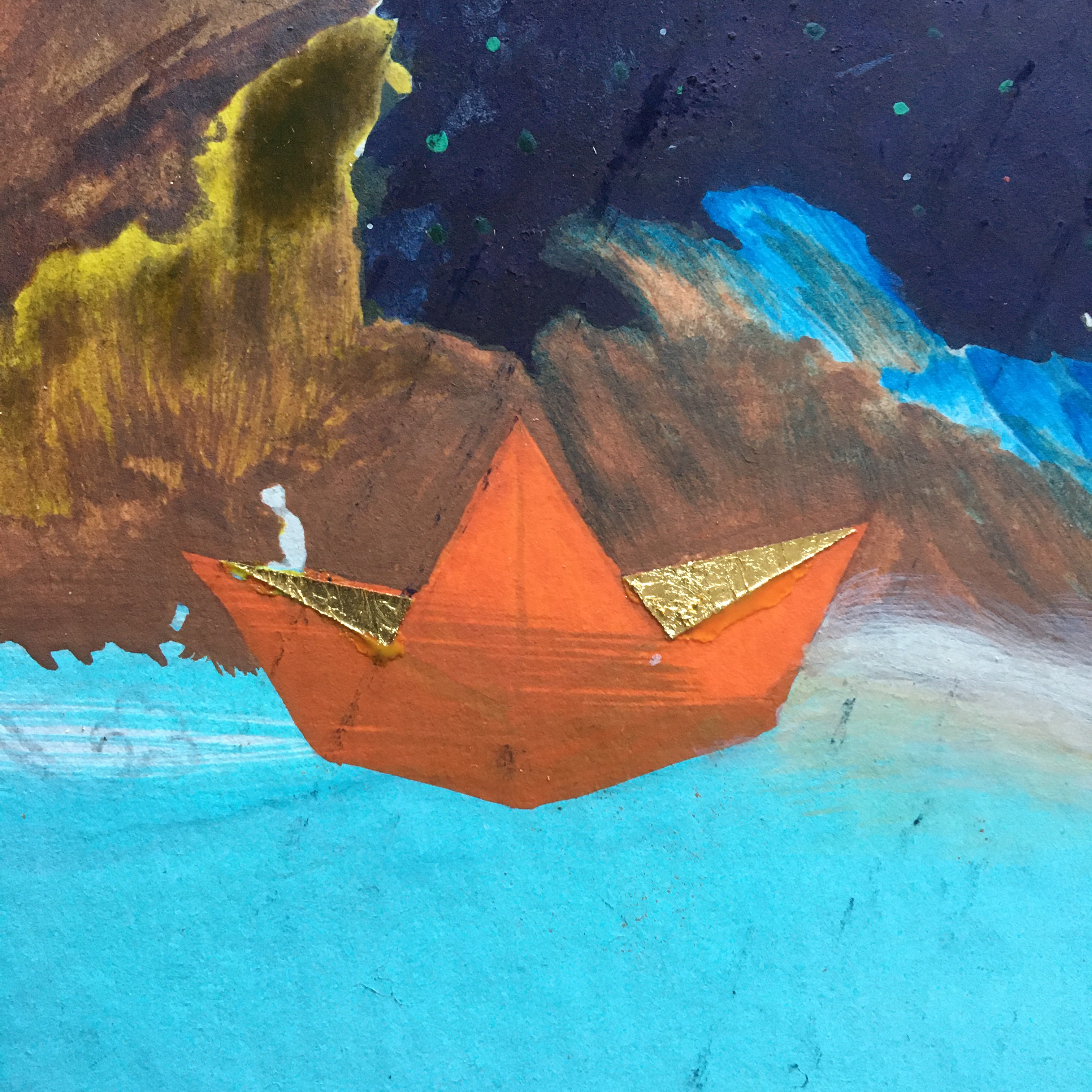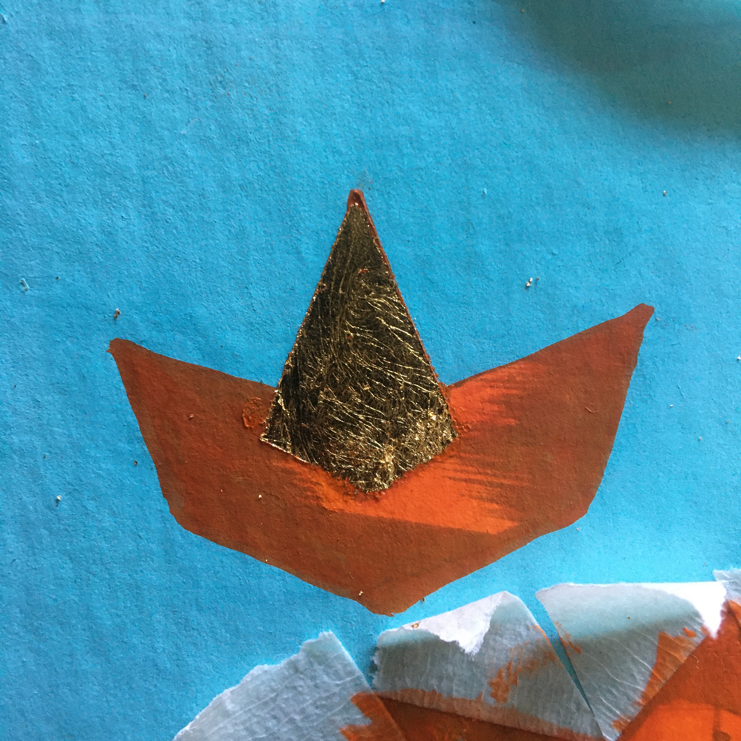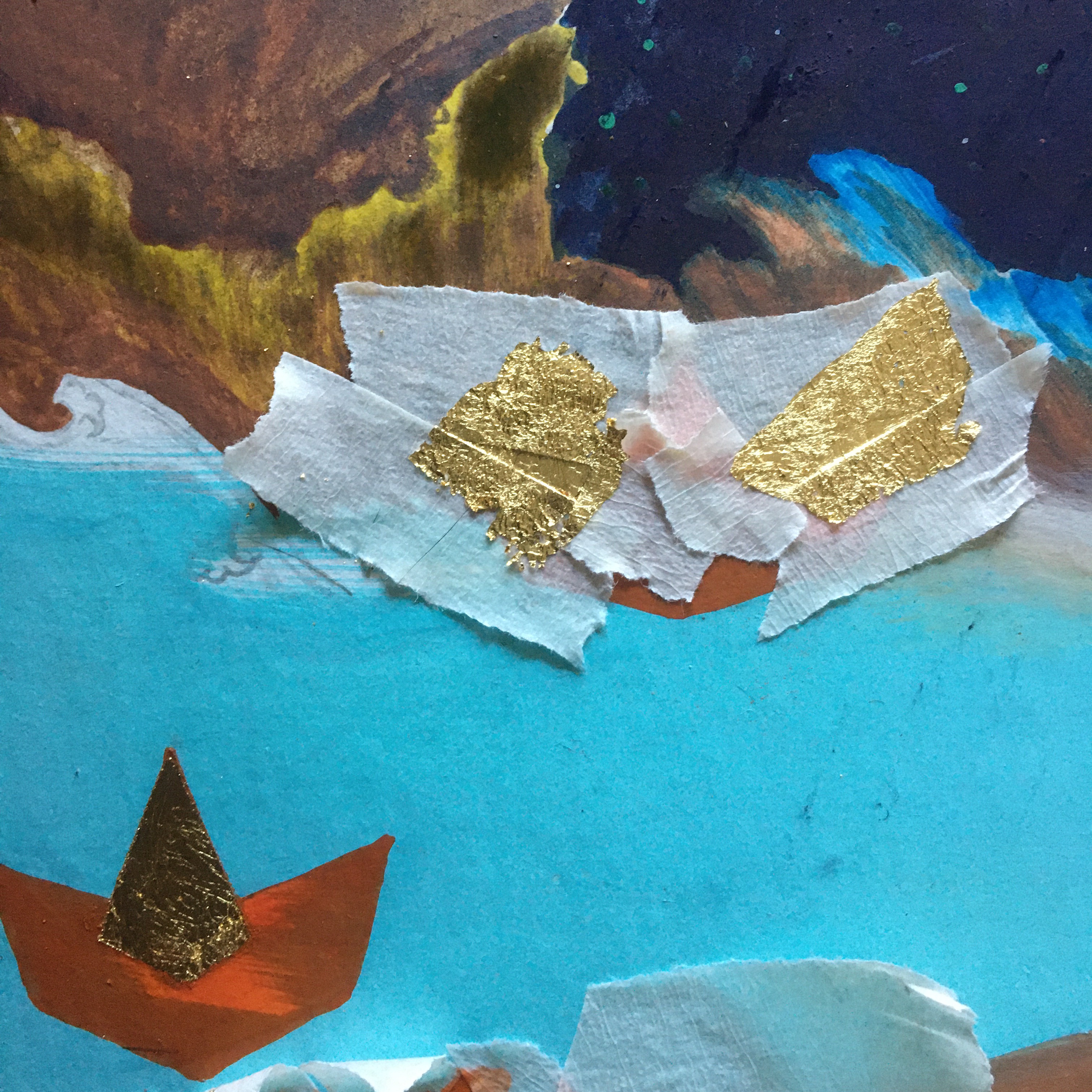 Don’t try this at home – gilding should be the first thing laid down on a painting before any paint. But, I changed my mind halfway through so came up with this masking tape trick (which happened to work – but might not always!)