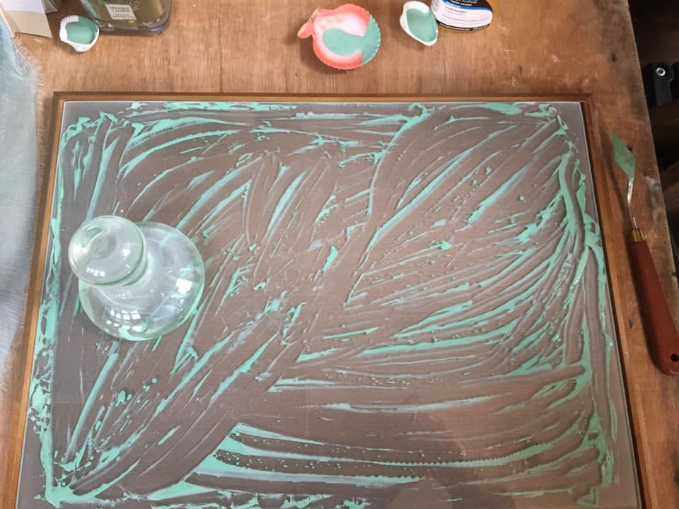 Using the Ether brush (large) to transfer – camera sometimes focuses on my stray hairs (from my head, not from my brushes!) – doing one-handed